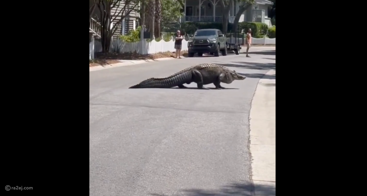 تمساح عملاق يتجول في شارع بالولايات المتحدة في مقطع فيديو يحبس الأنفاس