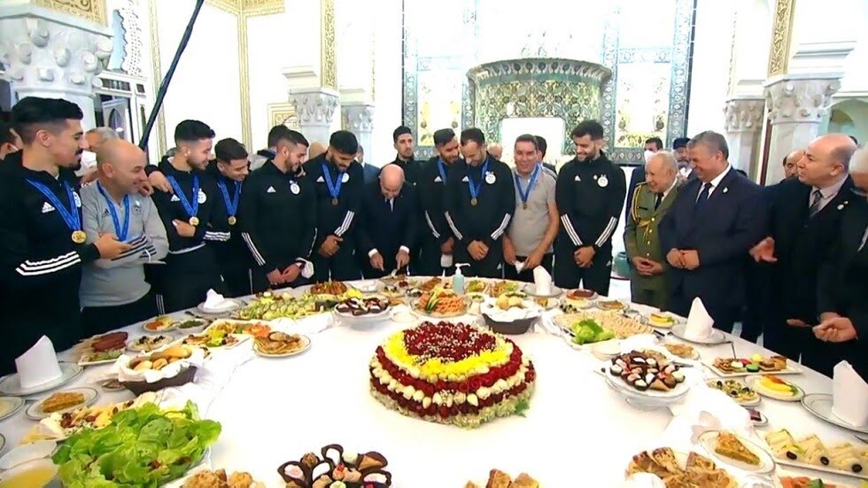 استقبال رسمي وشعبي حاشد لمنتخب الجزائر الفائز ببطولة كأس العرب 2021"كان في استقبالهم رئيس الوزراء أيمن بن عبدالرحمن وأعضاء من الحكومة الجزائرية في مطار هواري بومدين الدولي-فيديو