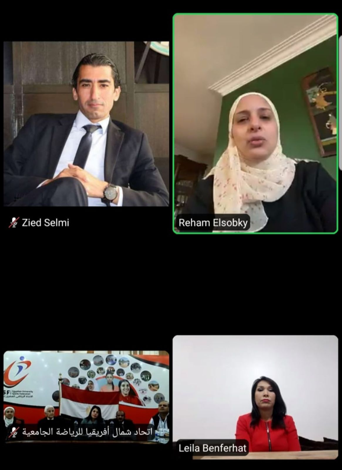 اجتماع مثمر للجان الملتقى الدولي لرياضة المرأة العربية بمقر اتحاد الجامعات المصري عبر تقنية زووم