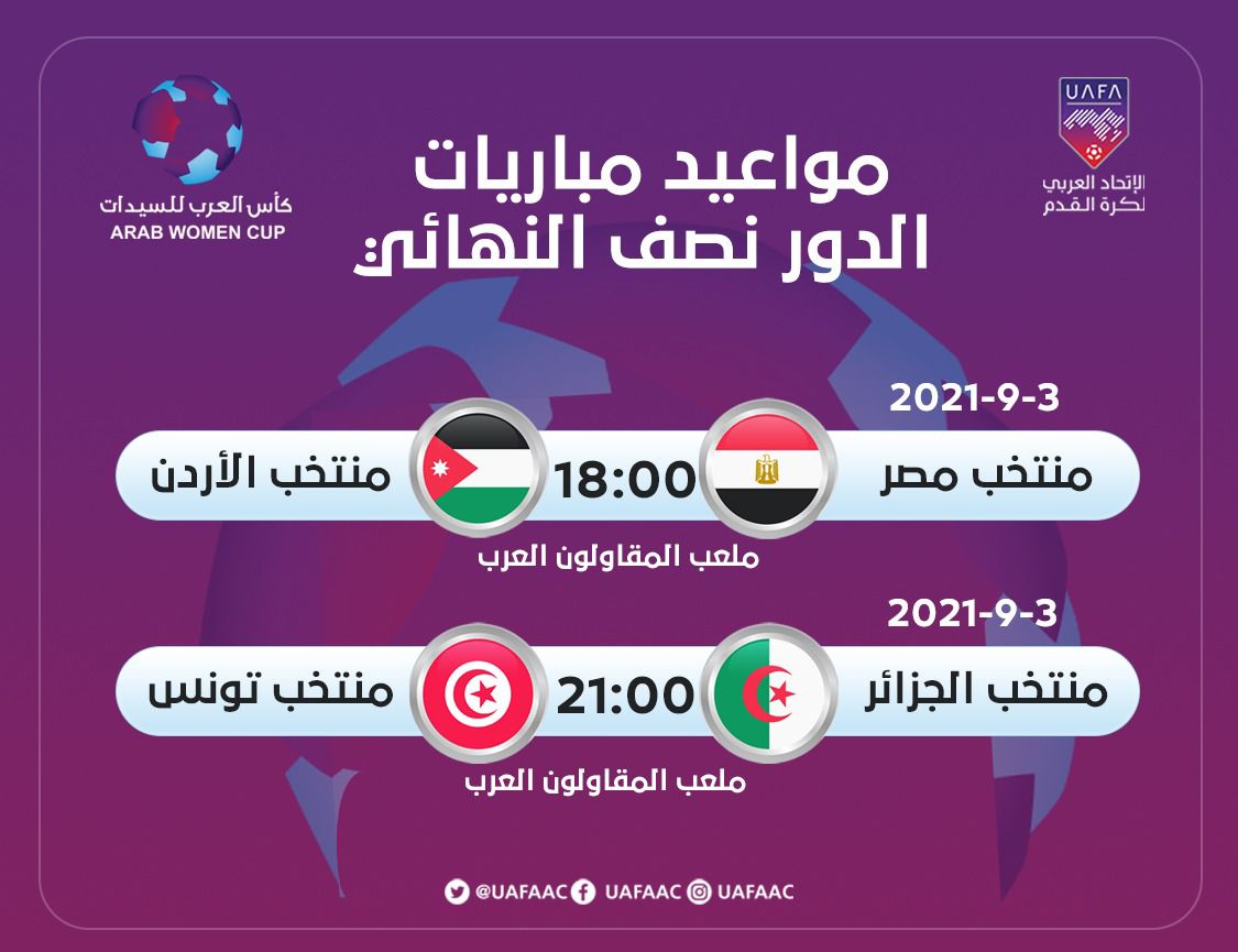 في دور نصف نهائي كأس العرب للسيدات مصر تواجه الأردن… وتونس تلاقي الجزائر