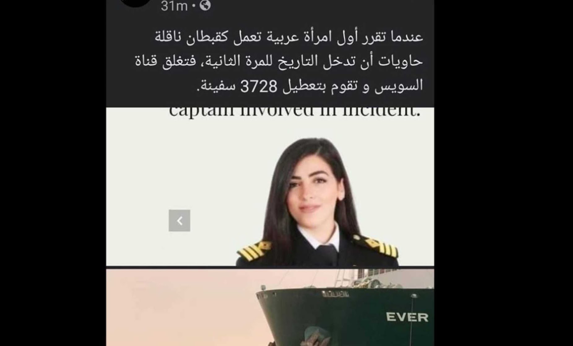 حقيقة تسبب أول قبطانة عربية بجنوح الناقلة وإغلاق قناة السويس!
