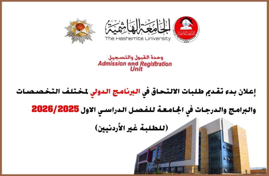 بدء تقديم طلبات الالتحاق في البرنامج الدولي لغير الأردنيين في الجامعة الهاشمية للفصل الأول من العام 2025/2026