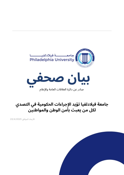 جامعة فيلادلفيا تؤيد الإجراءات الحكومية في التصدي لكل من يعبث بأمن الوطن والمواطنين