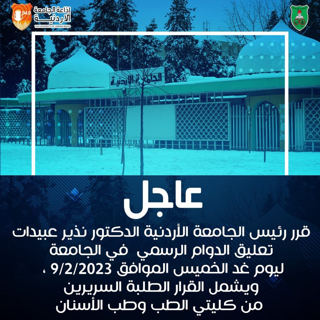 الأردنية تعلق دوام يوم غدٍ الخميس