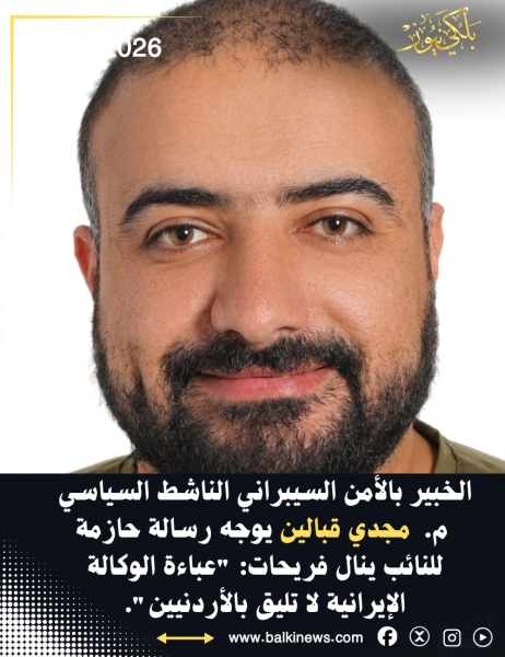 م.مجدي قبالين :- *الى ينال فريحات : عباءة الوكالة الإيرانية لا تليق بالأردنيين!*