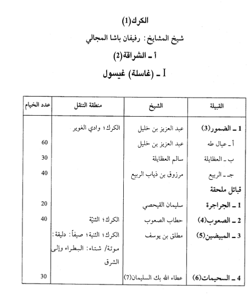 لطالما تحدث أهالي الكرك عن حلفين او قسمين في المكون الديمغرافي للمدينة، هما الشراقا والغرابا، ويضاف إليهما النصارى، وعلى رأس كل من الشراقا والغرابا شيخ مشايخ، وكانت التسمية نسبة إلى منازل كل قسم منهم إلى دار الحكومة او السراي، وعلى رأس الحلفين زعامتين هما الشيخ حسين باشا الطراونه (زعيم الغرابا) والشيخ رفيفان باشا المجالي زعيما على (الشراقا).