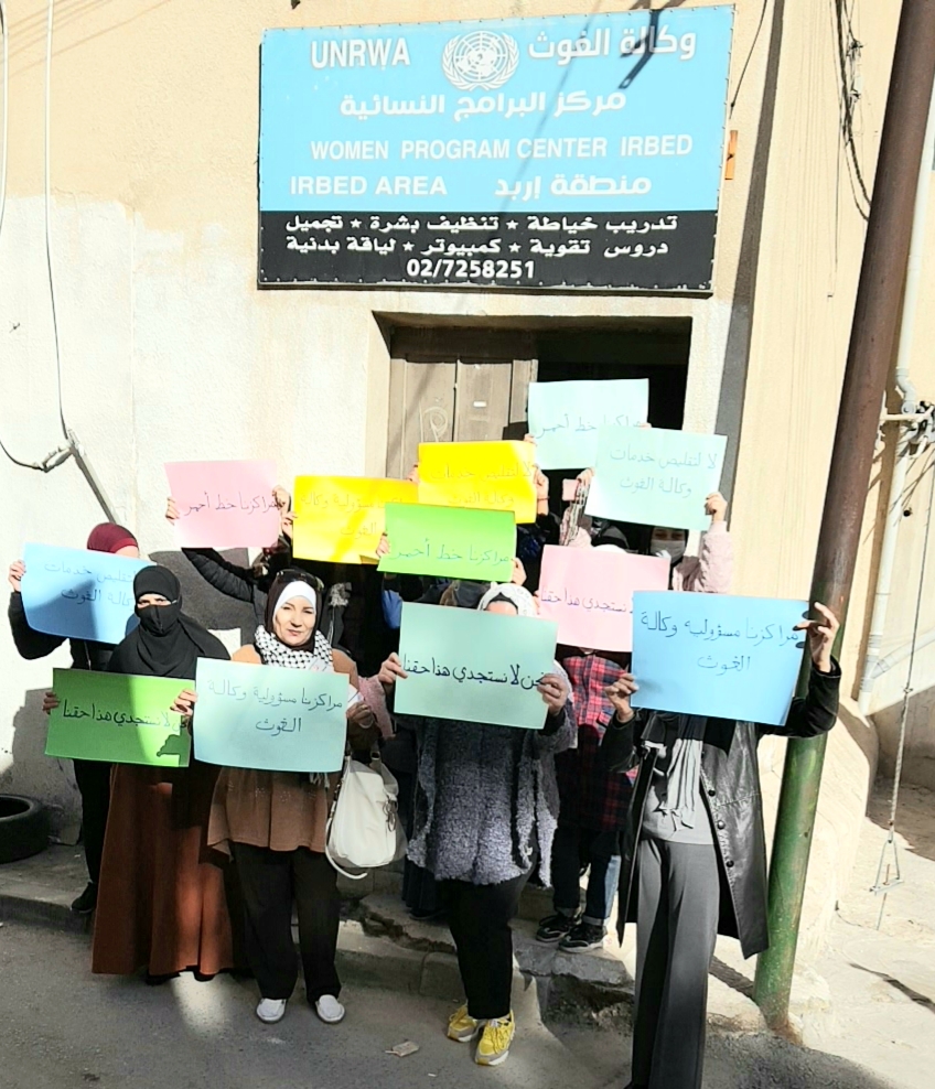 ﺇﻋﺎﺩﺓ ﺭﻓﻊ ﻋﻠﻢ الاونروا ﻋﻠﻰ ﻣﺮﺍﻛﺰ ﺍﻟﺘﻨﻤﻴﺔ ﺍﻟﻤﺠﺘﻤﻌﻴﺔ ﺍﻷﺭﺑﻊ ﻭﺍﻟﻌﺸﺮﻳﻦ ﻭﺫﻟﻚ ﺍﻋﺘﺒﺎﺭﺍً ﻣﻦ ﻳﻮﻡ ﺍﻻﺛﻨﻴﻦ ﺍﻟﻤﻮﺍﻓﻖ لليوم العاشر من شهر كانون الثاني "يناير " الحاليتنفيذ ﺍﻋﺘﺼﺎﻡ لجميع ﺍﻟﻌﺎﻣﻠﻴﻦ ﻓﻲ ﺍﻟﻤﺮﺍﻛﺰ ﻣﻦ ﺍﻟﺴﺎﻋﺔ ﺍﻟﺘﺎﺳﻌﺔ ﻭﺣﺘﻰ ﺍﻟﻌﺎﺷﺮﺓ ﺻﺒﺎﺣﺎً، ﺗﺮﻓﻊ ﻓﻴﻪ ﺍﻟﻴﺎﻓﻄﺎﺕ ﻭﺍﻟﺘﻮﺍﺻﻞ ﻣﻊ ﺍﻻﻋﻠﺎﻡ .ﻭﻛﺬﻟﻚ ﻭﻗﻒ ﺟﻤﻴﻊ ﺃﻧﻮﺍﻉ ﺍﻟﺘﻌﺎﻭﻥ ﺍﻻﺩﺍﺭﻱ ﻣﻊ ﻣﻮﻇﻔﻲ الاونروا ﺃﻭ ﺗﺰﻭﻳﺪﻫﻢ ﺑﺄﻱ ﺗﻘﺎﺭﻳﺮ ﺃﻭ ﻣﻌﻠﻮﻣﺎﺕ ﻭﺍﻟﻰ ﺍﺷﻌﺎﺭ ﺁﺧﺮ.