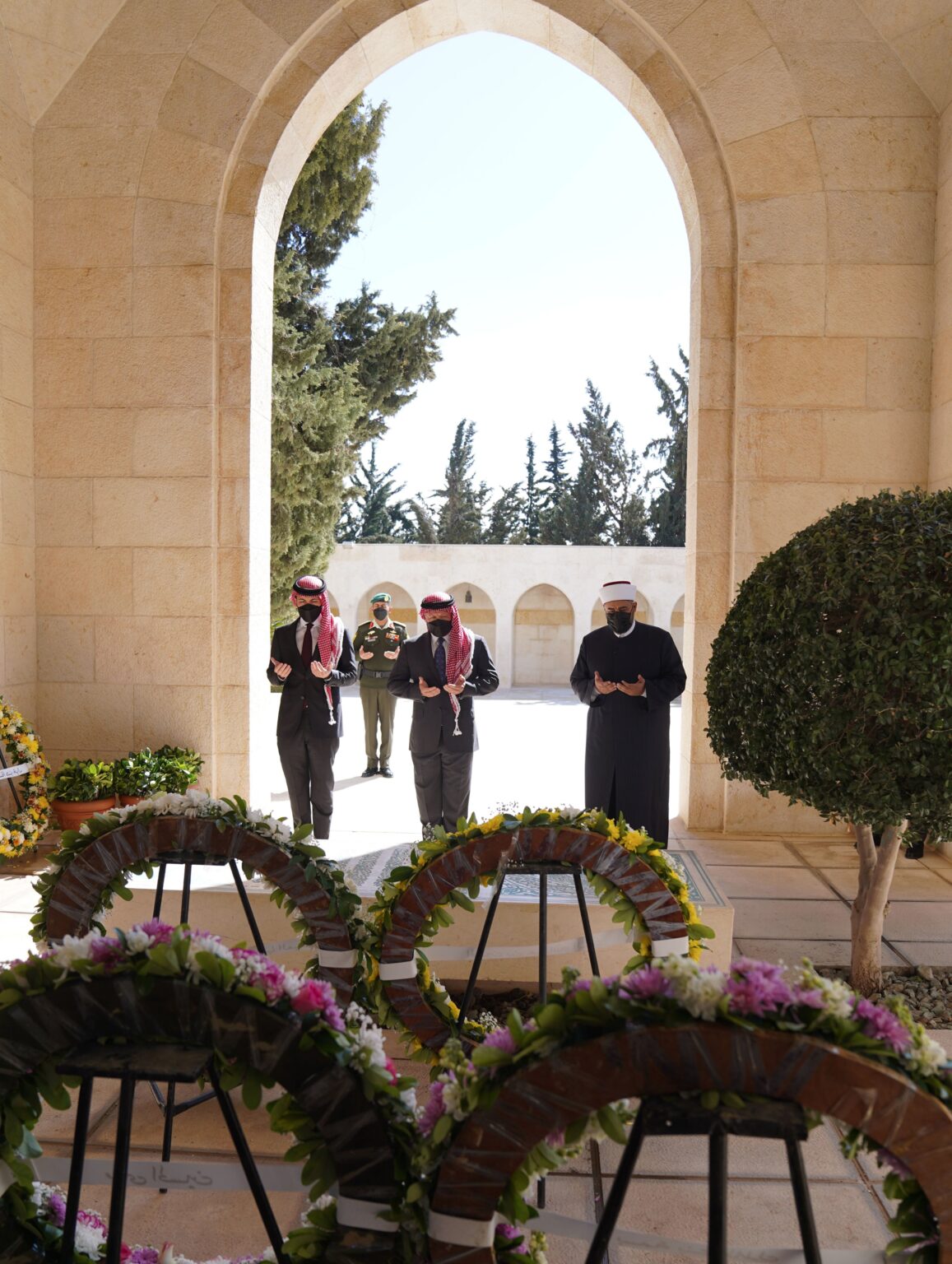 زار جلالة الملك عبدالله الثاني وسمو الأمير الحسين بن عبدالله الثاني ولي العهد، اليوم الاثنين، ضريح المغفور له، بإذن الله، جلالة الملك الحسين بن طلال، طيب الله ثراه، بمناسبة الذكرى الثالثة والعشرين لرحيله.