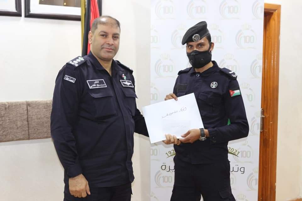 كرم مدير إدارة الدوريات الخارجية العقيد الدكتور حسام القاضي طاقم دورية من مرتباتنا وذلك لاظهارهم الصورة الحسنة عن الإدارة في التعامل مع المواطنين والمتقاعدين العسكريين من خلال تقديم الخدمات والمساعدات الإنسانية لطالبيها .