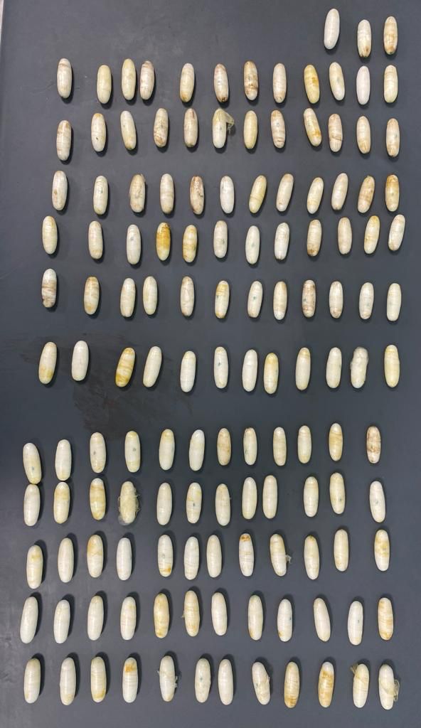 وبعد تفتيشهما والكشف عليهما بواسطة الاجهزة اللازمة اكتُشف وجود كميات من المواد المخدرة داخل أحشائهما ، وجرى إخراج هذه المواد بالطرق الطبية، وقُدرت ب 2 كغم من مادة الكوكايين المخدرة .
