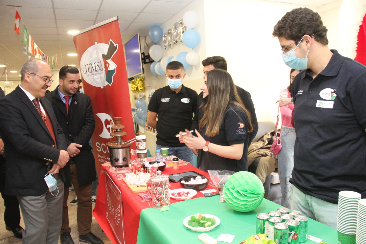 مندوبا عن رئيس جامعة البلقاء التطبيقية احمد فخري العجلوني رعى نائب رئيس الجامعة للشؤون المراكز العلمية الأستاذ الدكتور نضال يونس عميد كلية الطب حفل إطلاق الحملة التعريفية بالاتحاد الدولي لجمعيات طلبة الطب والذي نظمتها كلية الطب في مركز الجامعة .