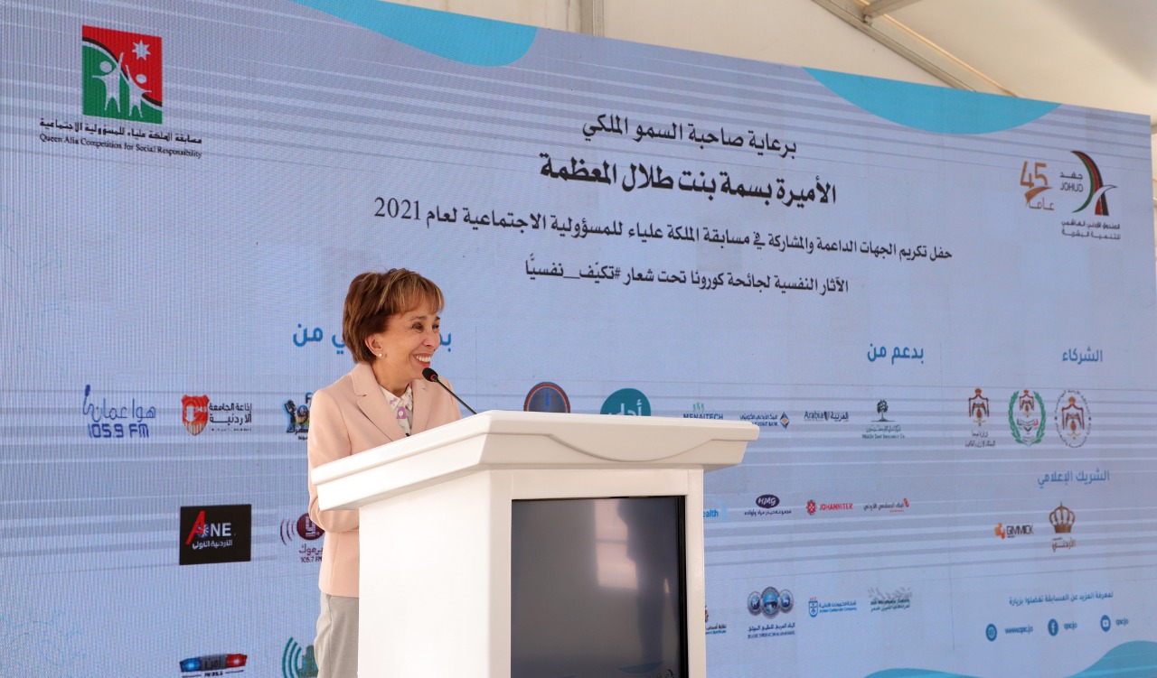 كرمت سمو الاميرة بسمة بنت طلال، الجهات الداعمة لمسابقة الملكة علياء للمسؤولية الاجتماعية لعام 2021، والجهات المشاركة فيها.