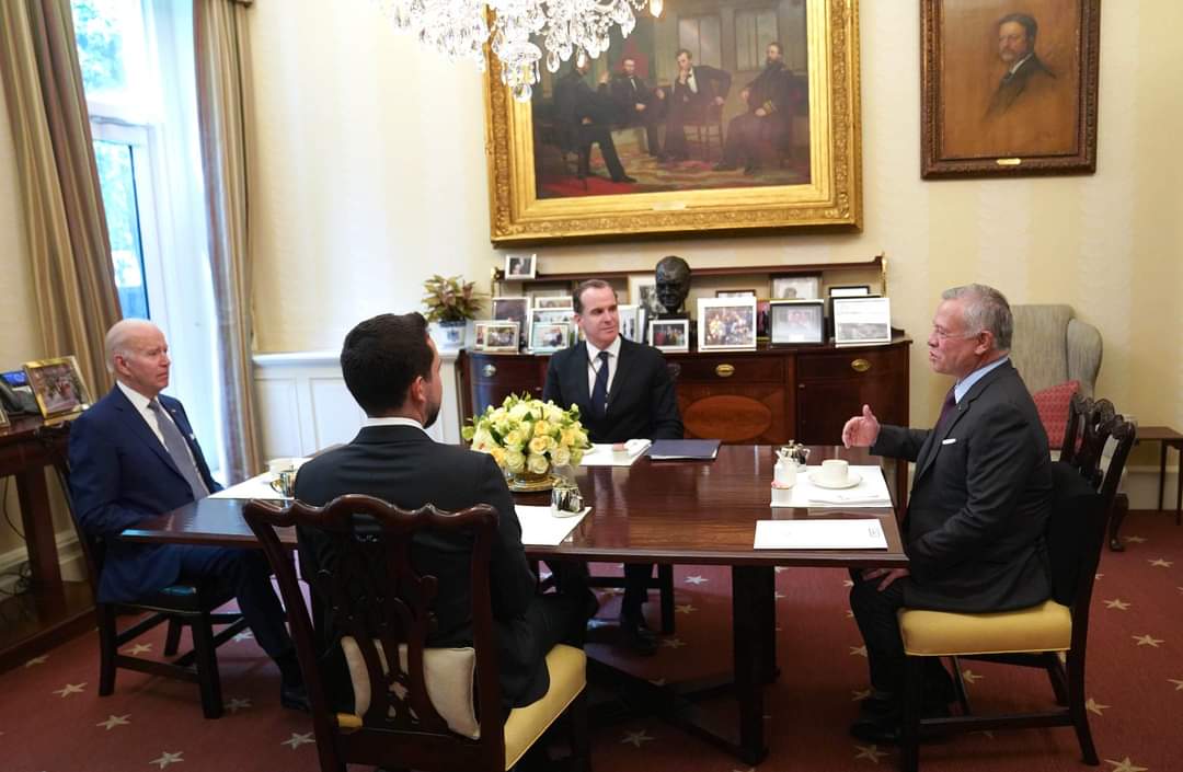 انتهى قبل قليل لقاء القمة الذي جمع الملك عبدالله الثاني بحضور ولي العهد مع الرئيس الامريكي جو بايدن الذي استمر اكثر من ساعة.