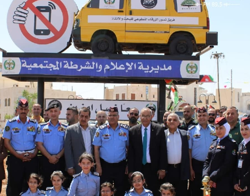 دشنت مديرية الإعلام والشرطة المجتمعية بالزرقاء، اليوم الاثنين، مجسم مركبة صغيرة مصطدمة بعلامة هاتف نقال كرسالة تحذيرية من حوادث السير وخطورة الانشغال ببرامج التواصل الاجتماعي المتعددة.