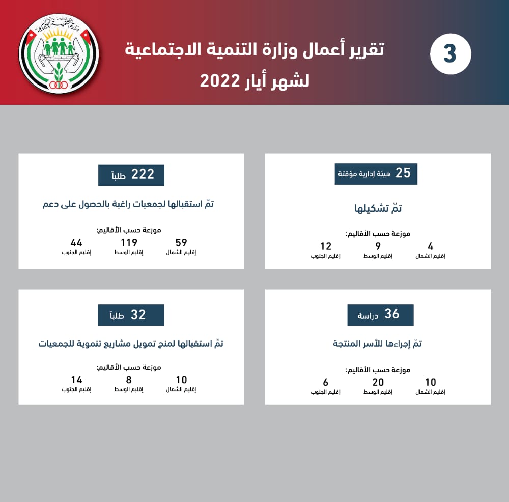 التنمية الاجتماعية تصدر تقريرها لشهر أيار الماضي