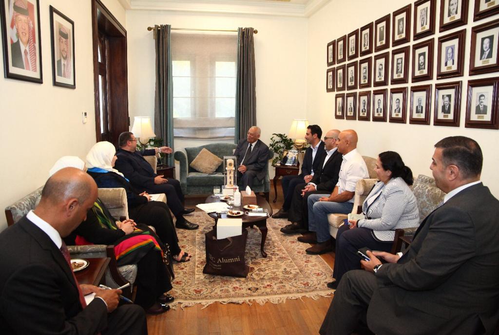 التقى رئيس الديوان الملكي العامر معالي يوسف العيسوي الخميس الموافق 16/6/2022 معالي السيد أيمن حتاحت / رئيس نادي خريجي الكلية العلمي الإسلامية وأعضاء الهيئة الإدارية