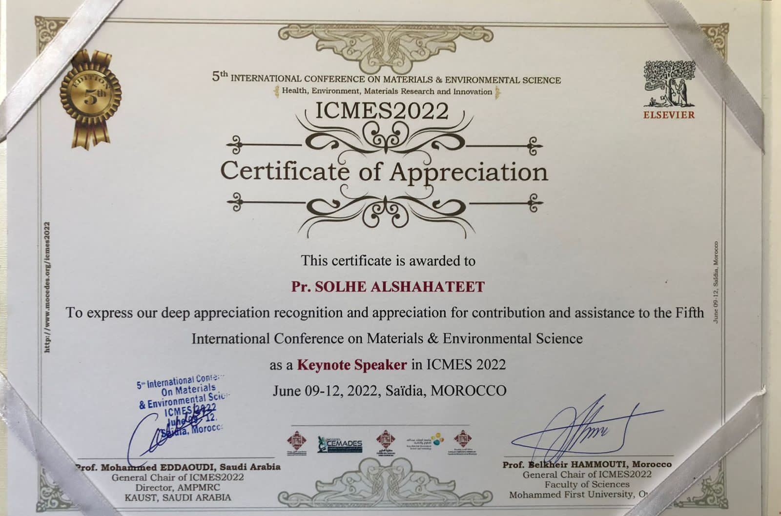 هذا وقد استضاف منتجع السعيدية السياحي بالمغرب ، النسخة الخامسة من المؤتمر الدولي للمواد وعلوم البيئية (ICMES2022)، حول موضوع “مواد جديدة لتنمية الطاقة المستدامة وقطاع الصحة والطب”.
