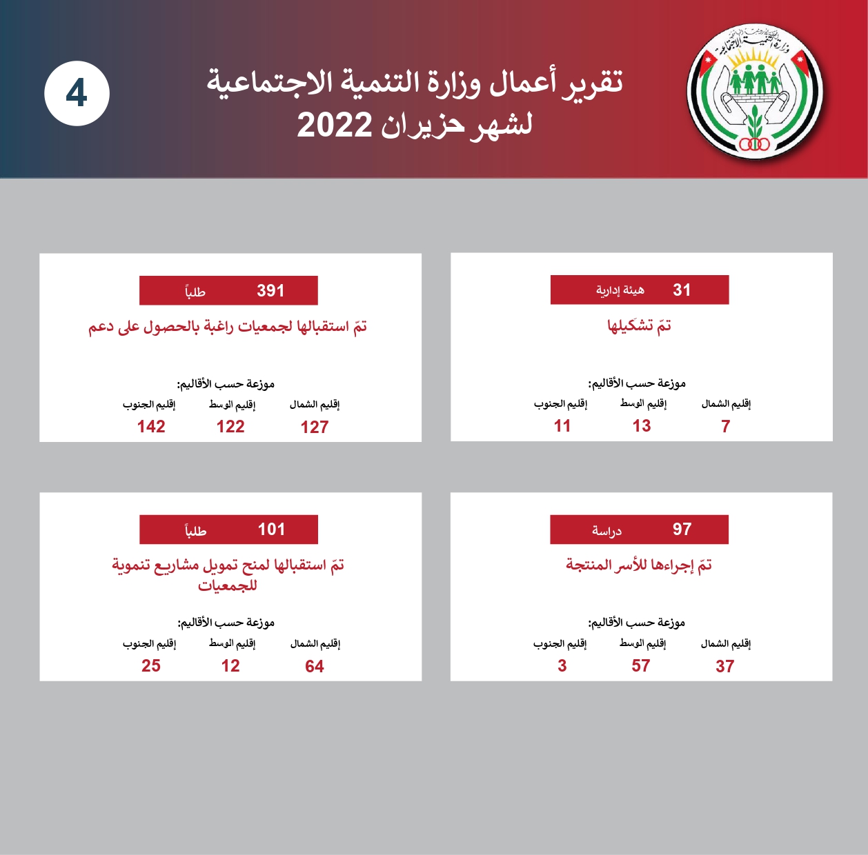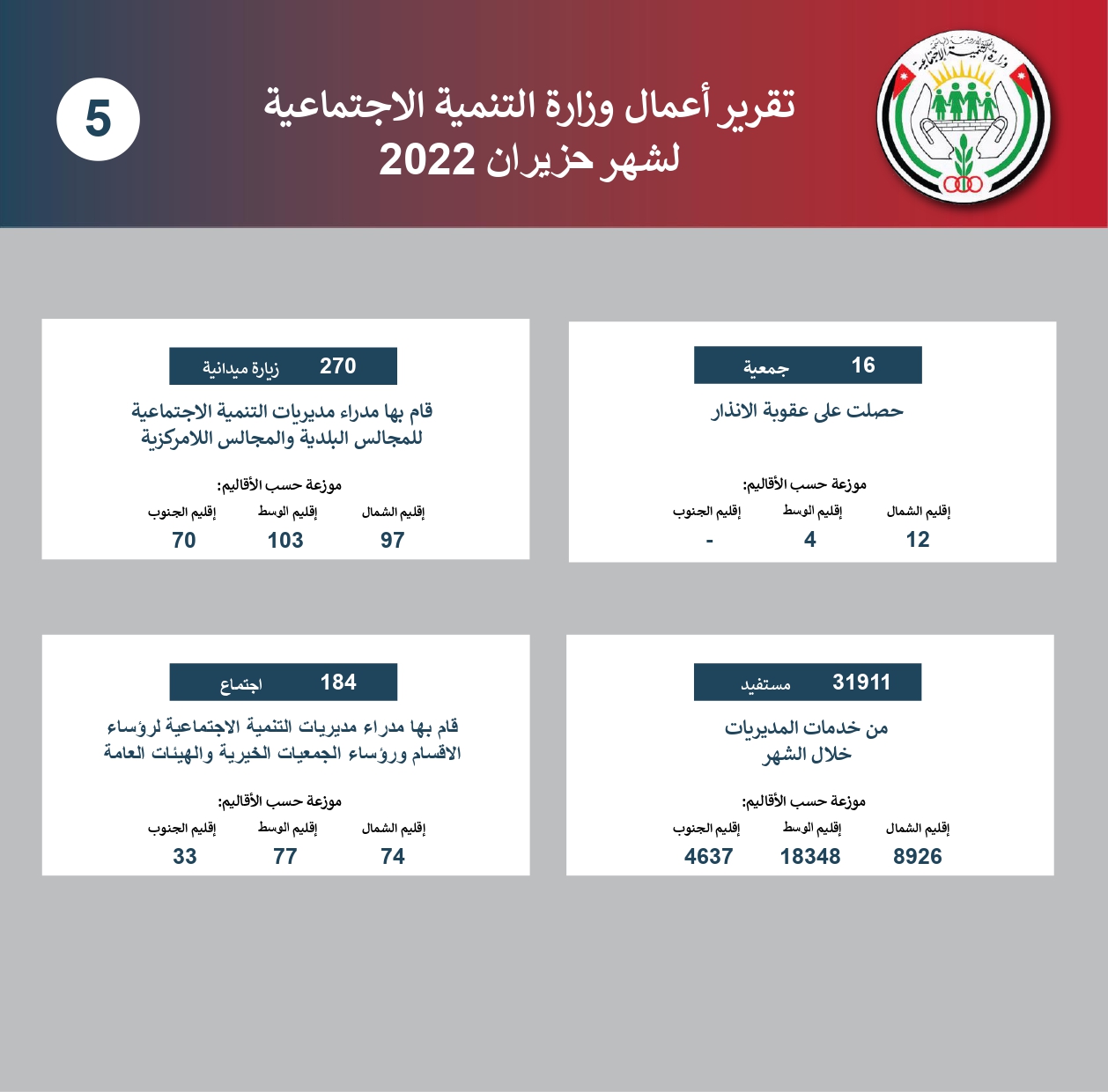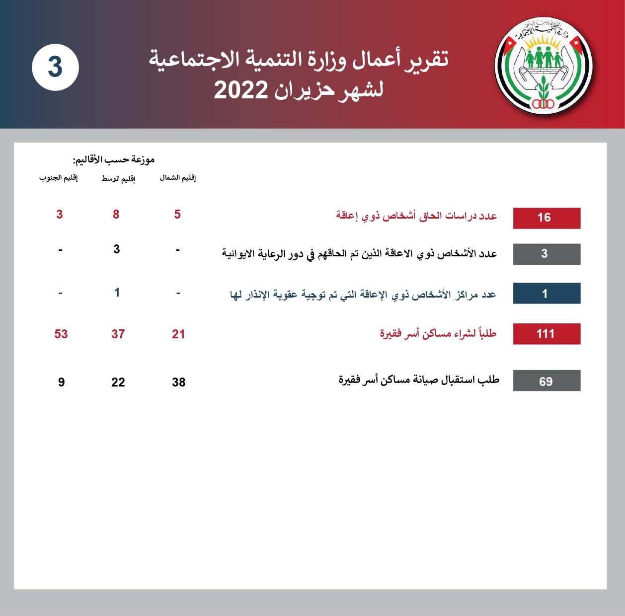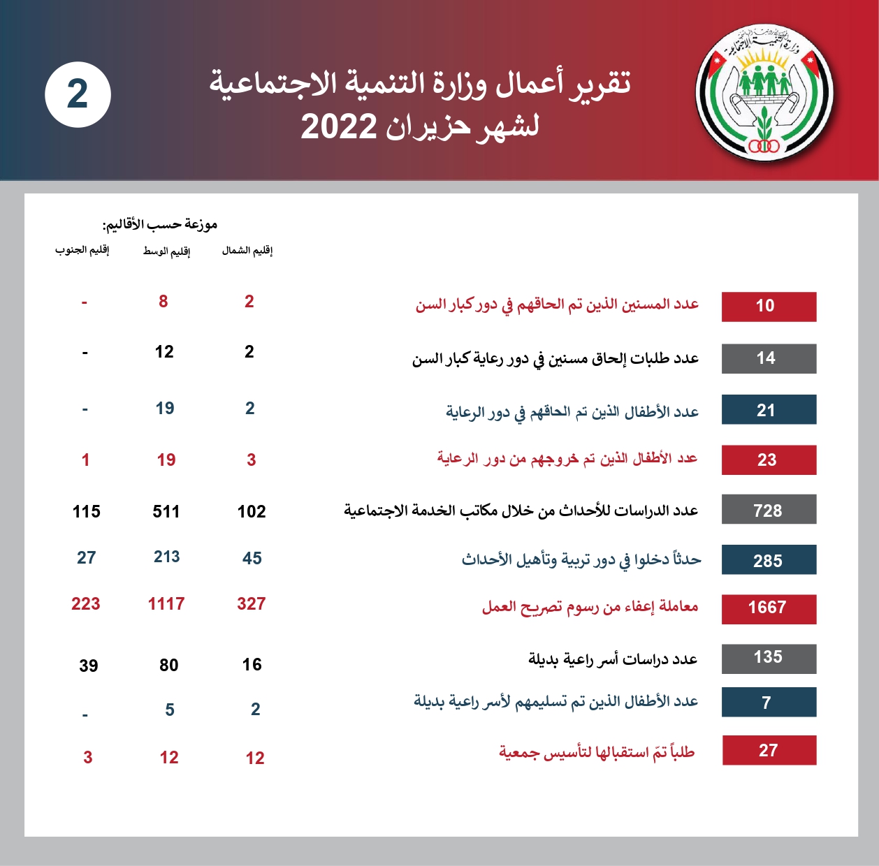 التنمية الاجتماعية تصدر تقريرها لشهر حزيران الماضي