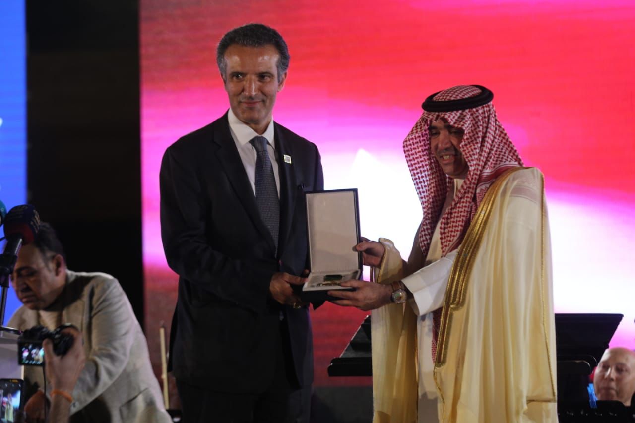 وسلم رئيس المنظمة العربية للسياحة آل فهيد، وسام السياحة العربية لوزير السياحة والآثار الفايز، وذلك تقديراً وعرفاناً بجهوده ومساهمته بدعم وتنمية وتطوير صناعة السياحة، كما سلم الوزير الفايز شعار مادبا عاصمة السياحة العربية للدكتور آل فهيد.