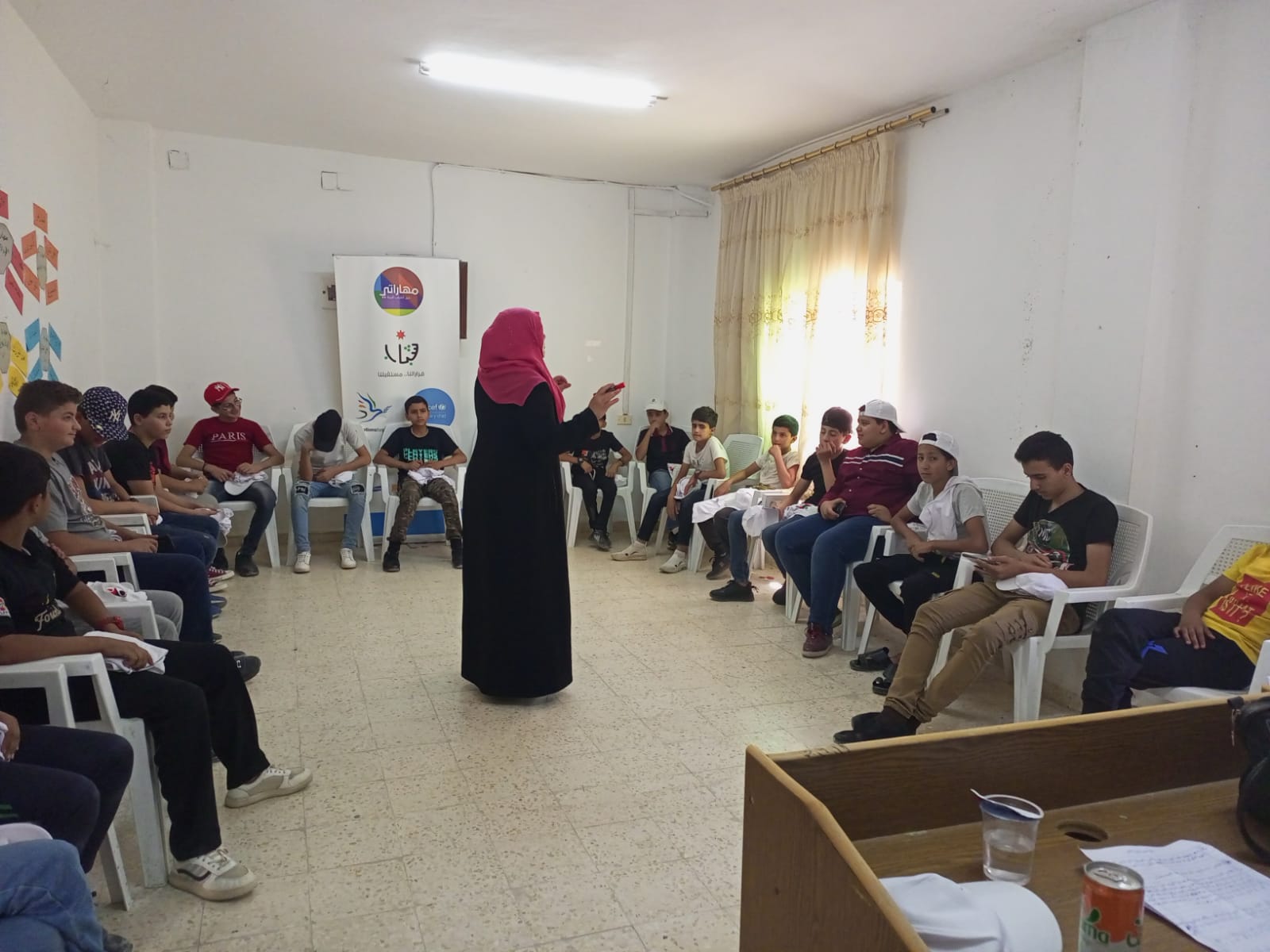 وفي مركز شباب أدر وضحت المدربه عائشة المعايطة مفهوم التماسك الاجتماعي واهدافه وعناصره وآثاره على المجتمع وتضمنت الفعاليات أيضا تدريبات وجلسات لتوعيه المشاركين بأهمية معسكرات الحسين للعمل والبناء في بناء شخصية المشاركين .