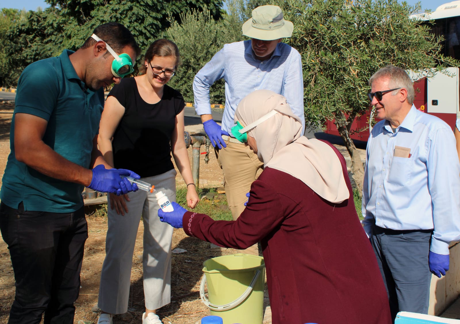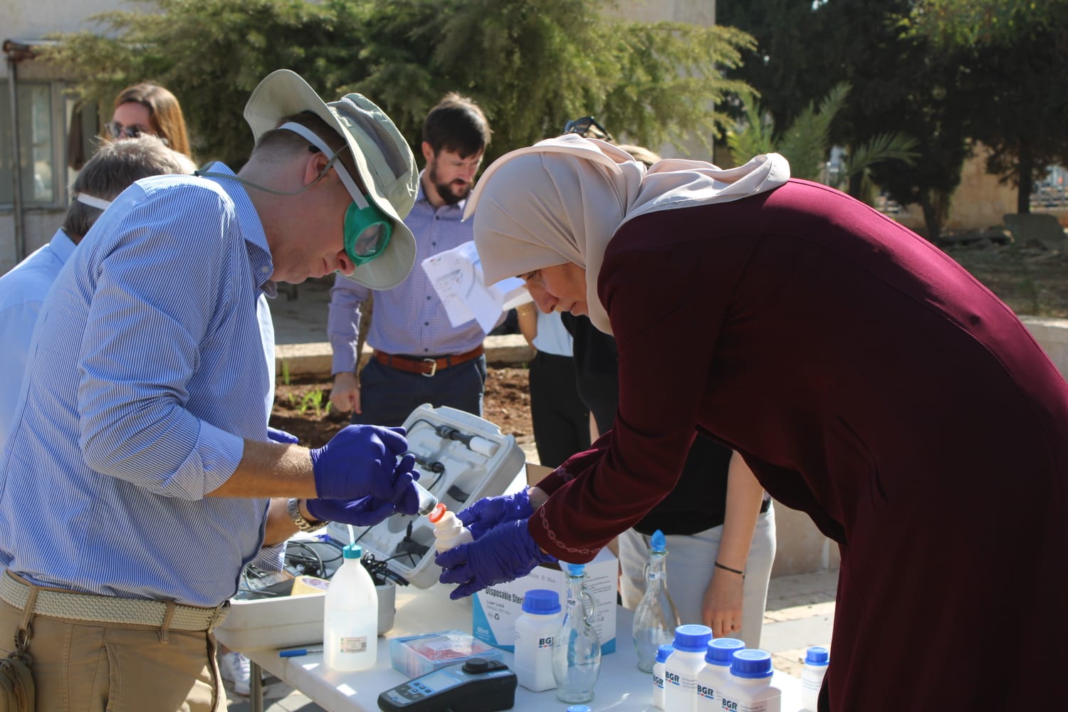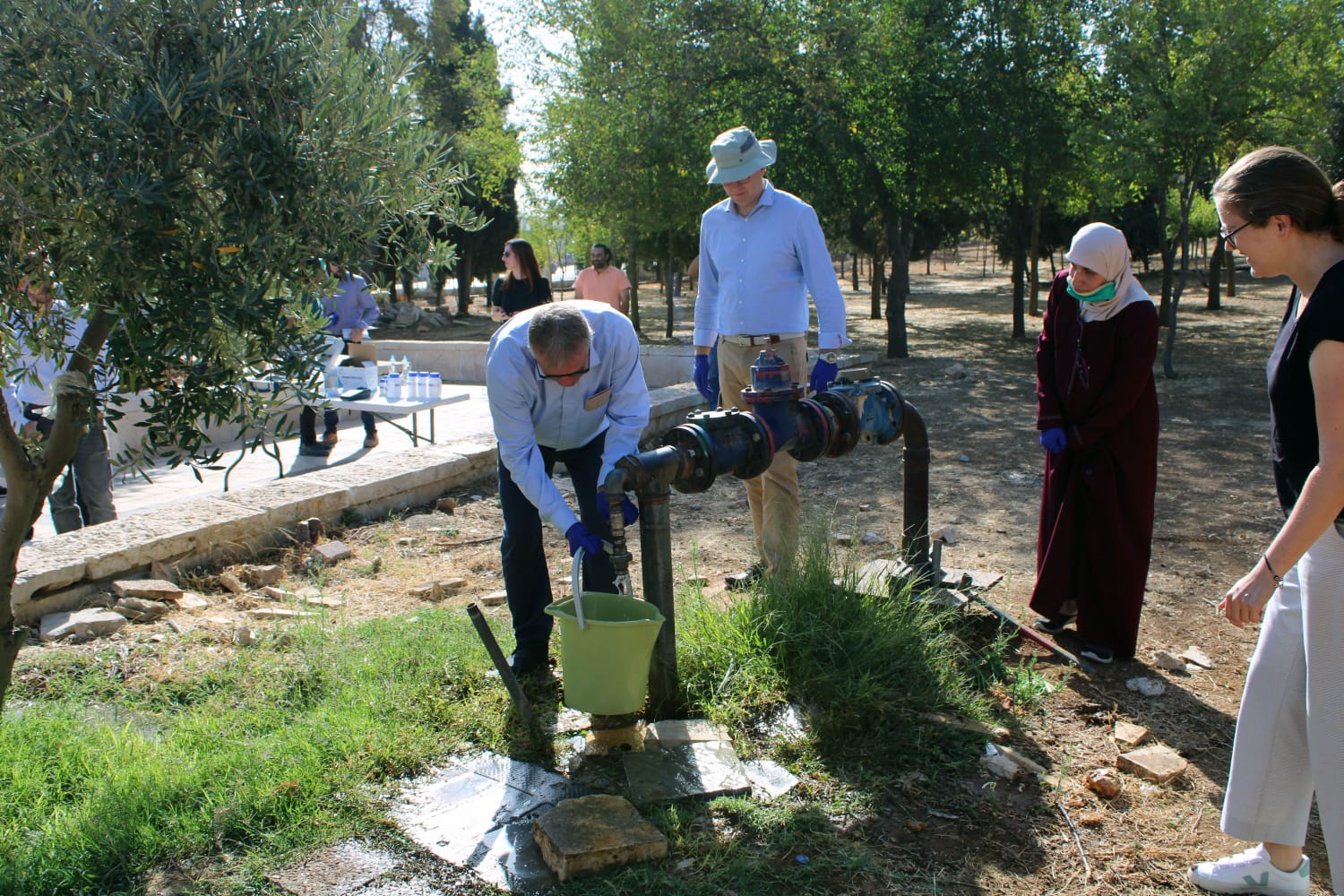 في إطار جهود التعاون الاردني الالماني وضمن التعاون المشترك بين وزارة المياه والري /سلطة المياه والمعهد الفيدرالي الالماني لعلوم الارض والمصادر الطبيعية (BGR) والممول من الوزارة الاتحادية الألمانية للتعاون الاقتصادي والتنمية (BMZ) بخصوص حماية مصادر المياه الجوفية ونوعيتها ، قام وفد من الوزارة الاتحادية BMZ بزيارة ميدانية لاحد المصادر المائية في عمان واخذ عينة من بئر المياه التابع لشركة مياه الأردن (مياهنا) بالقرب من حدائق الملك الحسين المخصص لغايات الشرب بهدف التأكد من سلامة اجراءات نوعية المياه وفحصها وتم قياس درجة الحموضة ودرجة الحرارة والملوحة باشراف نخبة من موظفي مختبرات سلطة المياه المركزية وتبين انها مطابقة للمواصفة الاردنية لمياه الشرب وللمواصفات العالمية لمياه الشرب .