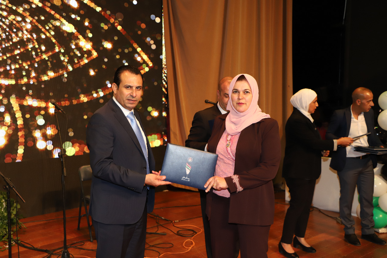 وفي نهاية الحفل، سلم الدكتور العجارمة الدروع للمعلمين والمعلمات المكرمين من مختلف مديريات التربية في المملكة، والجهات الداعمة للاحتفالية.