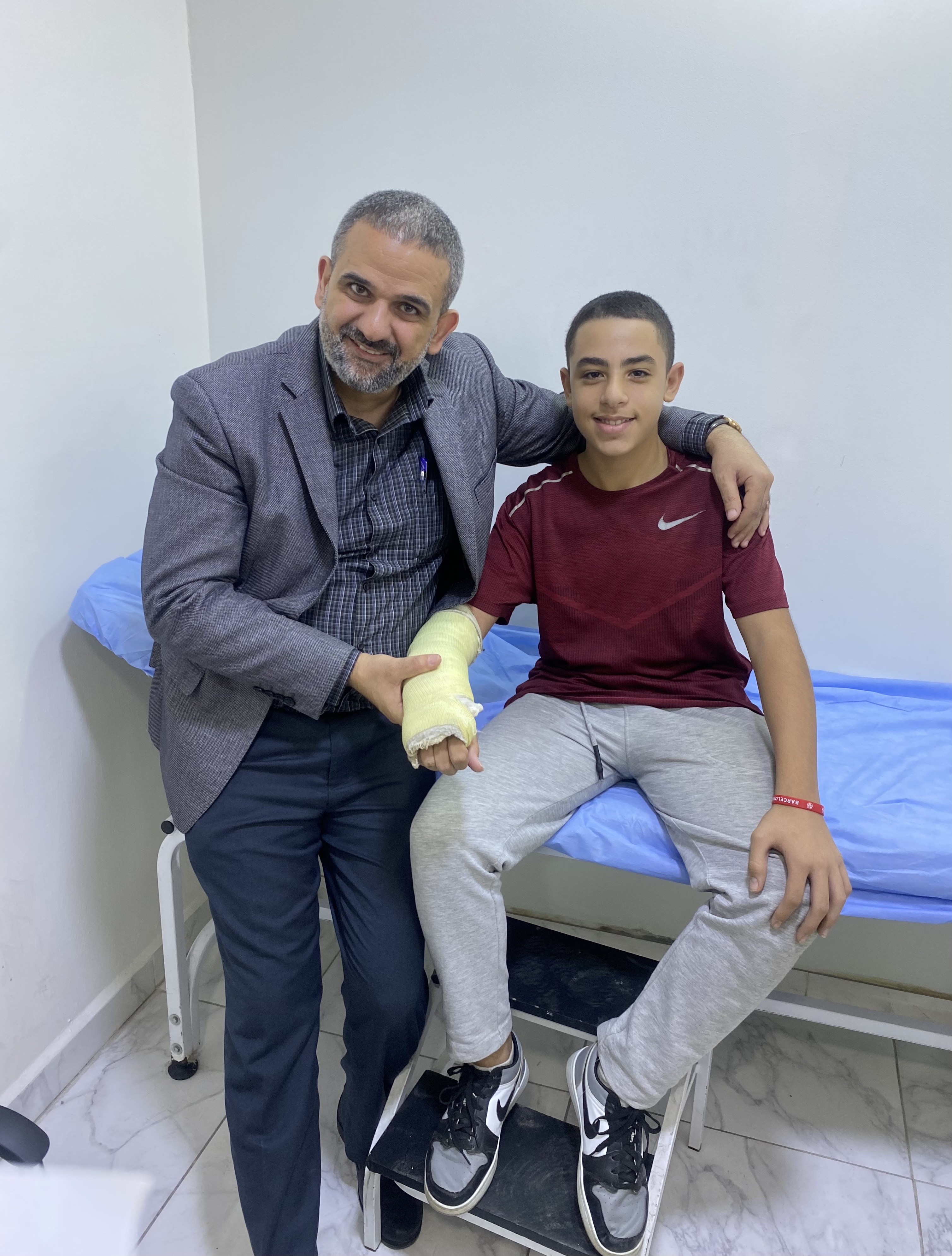 على العناية الفائقة والاهتمام منقطع النظير والمتابعة الحثيثة وعلى مدار 31 يوم لابننا الشاهين بعد تعرضه لكسر صعب في الساعد اثناء ممارسته الرياضة في حرم المدرسة .