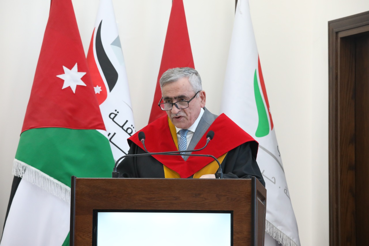 كما تحدث عبيدات موجها خطابه للخريجين اسمحوا لي أنْ أُبارِكَ لكُم هذا الجُهدَ والعناءَ والإنجازَ الغالي. مُباركٌ عليكُم التّخرُّجُ، ومباركٌ على الوطنِ هذا النّشءُ الذي تفخرُ أيُّ بلادٍ أن يحملَ اسمَها؛ شبابٌ مُبدِعٌ تملؤُهُ الطّاقةُ والرّغبةُ في تغييرِ المُستقبَلِ.
