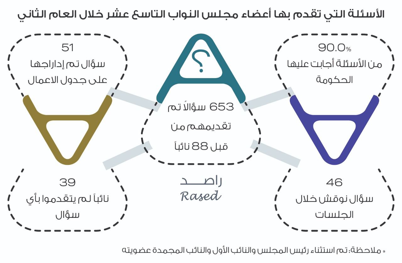 · 30 نائباً قدموا 75٪ من أسئلة المجلس خلال العام الثاني.