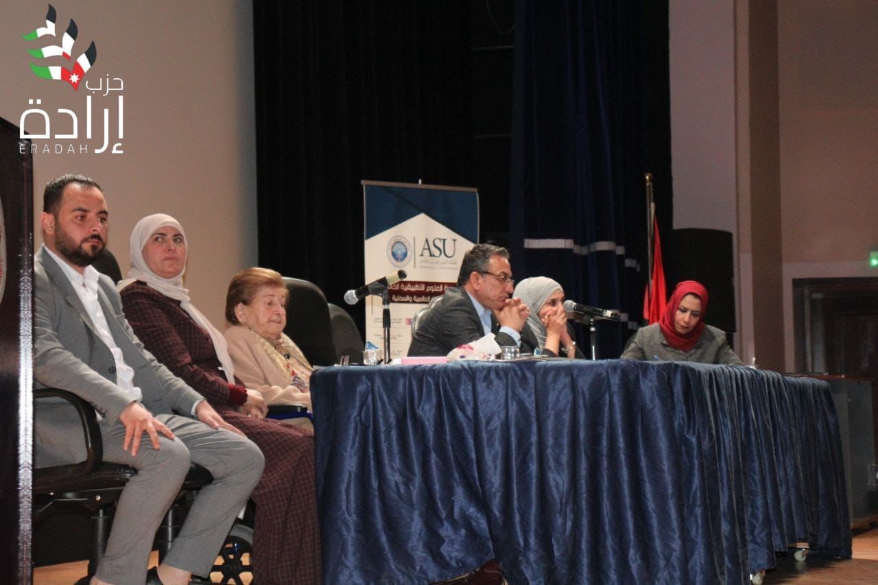 التقى حزب إرادة -تحت التّأسيس بجامعة العلوم التطبيقية مع عدد من القيادات النسائيّة من إقليم الوسط ( عمّان _ مأدبا _ الزرقاء _ البلقاء) حيث زاد عدد الحضور عن ٦٠٠ سيدة.