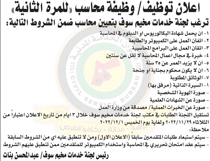 الخدمة المدنية تعلن وظائف شاغرة "تفاصيل"