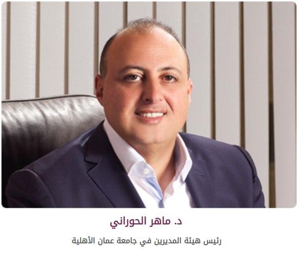 ترجع بي الذاكرة 19 سنة الى الوراء عام 2003م لأتذكر د.ماهر الحوراني رئيس هيئة المديرين ومالك جامعة عمان الأهلية حاليا. عندما كنت في الفصل الأخير وعلى وشك التخرج وكان العائق الوحيد أمام تخرجي واستلام شهاداتي 600 دينار أردني تقريبا حسب ما أذكر.