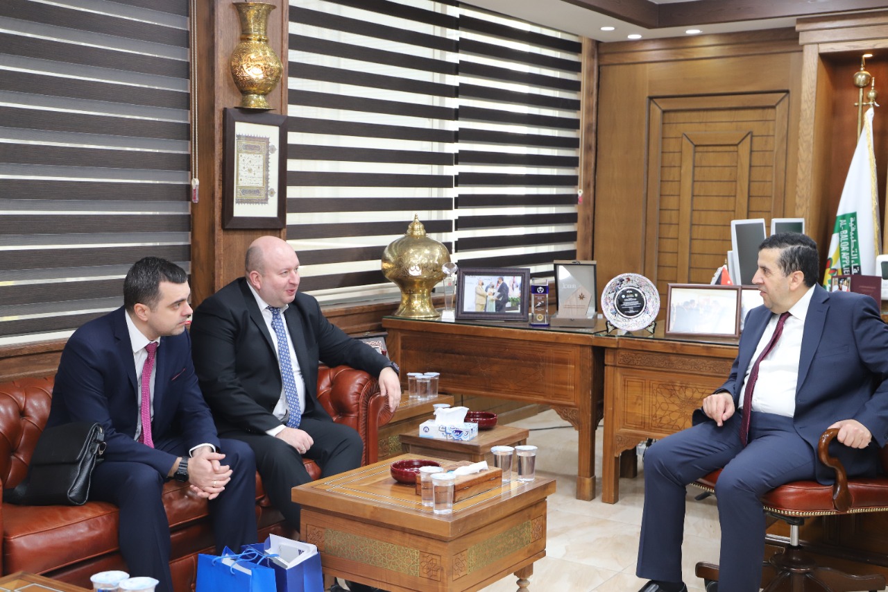 استقبل رئيس جامعة البلقاء التطبيقية الاستاذ الدكتور أحمد فخري العجلوني اليوم في مكتبه الملحق الثقافي الروسي في عمان السيد أليكسي بوكين والوفد المرافق له، بهدف تعزيز التعاون البحثي والاكاديمي والتبادل الثقافي بين البلقاء التطبيقية والجامعات الروسية.