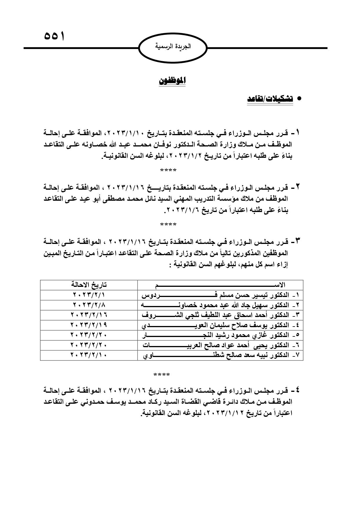 ووفق ما نشر في الجريدة الرسمية، فإن المتقاعدين المشمولين بالقرار هم كل من: