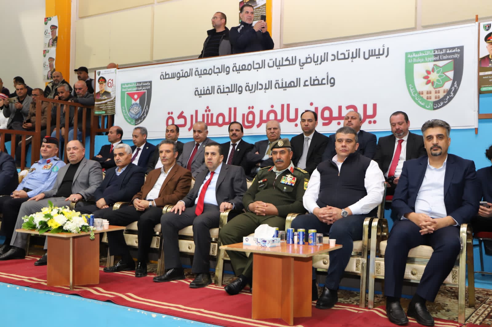 رعى رئيس مجلس مفوضي سلطة العقبة معالي السيد نايف الفايز وبحضور رئيس جامعة البلقاء التطبيقية الاستاذ الدكتور أحمد فخري العجلوني ومحافظ العقبة عطوفة السيد خالد الحجاج، وعدد من مفوضي السلطة ومدراء الأجهزة الأمنية في العقبة الحفل الختامي لبطولة الاتحاد الرياضي للكليات الجامعية والجامعية المتوسطة الدورة التاسعة عشر والتي اقيمت تصفياتها النهائية في مدينة العقبة بمناسبة احتفالات جامعة البلقاء التطبيقية بالعيد الواحد والستين لميلاد جلالة الملك عبدالله الثاني ابن الحسين المعظم.