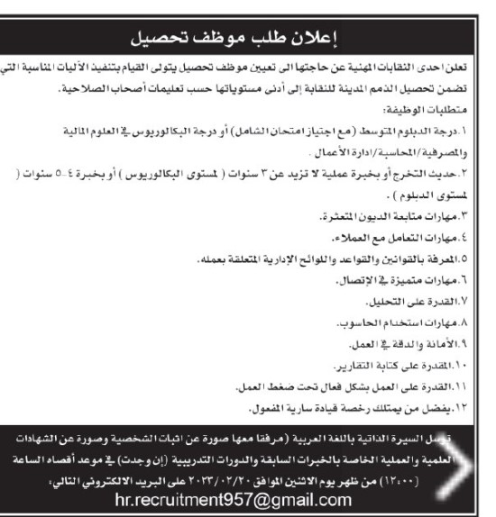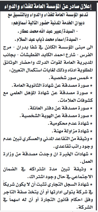 كما اعلان اليوم الاربعاء في الصحف اليومية عن وظائف شاغرة .