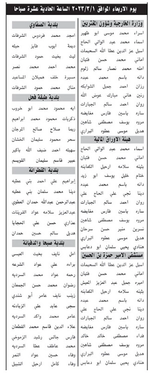 وظائف حكومية شاغرة ومدعوون للمقابلات الشخصية-أسماء