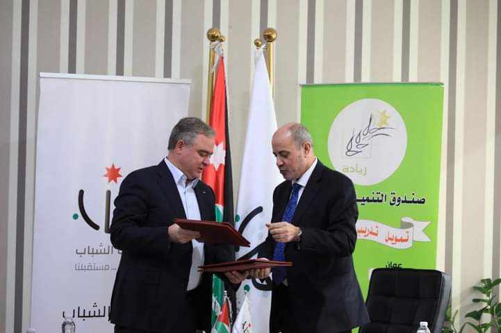 وقع وزير الصناعة والتجارة والتموين وزير العمل رئيس مجلس ادارة صندوق التنمية والتشغيل معالي يوسف محمود الشمالي و وزير الشباب محمد النابلسي اليوم في وزارة الشباب مذكرة تفاهم ما بين وزارة الشباب وصندوق التنمية والتشغيل تضمنت تخصيص برنامج تمويلي وحوافز للمتطوعين، بحضور عطوفة مدير عام صندوق التنمية والتشغيل منصورعودة الوريكات وأمين عام وزارة الشباب الدكتور حسين الجبور.