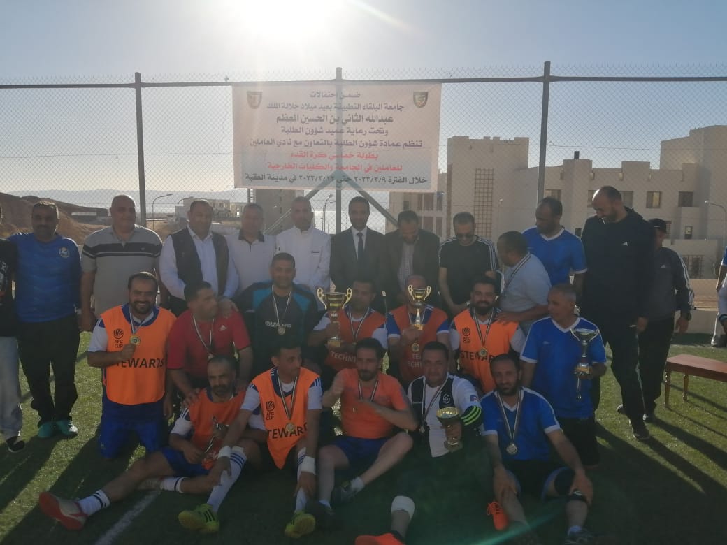 وحصل فريق كلية الاميرة رحمة على المركز الثاني، كما تم تتويج الفرق الفائزة وتوزيع الجوائز بحضور نائب عميد شؤون الطلبة الدكتور عبداللطيف ابورمان ورئيس نادي العاملين المهندس علي الدباس، والتي تم تنظيمها بمناسبة احتفالات جامعة البلقاء التطبيقة بعيد ميلاد صاحب الجلالة الملك عبد الله الثاني ابن الحسين المعظم في مدينه العقبة.
