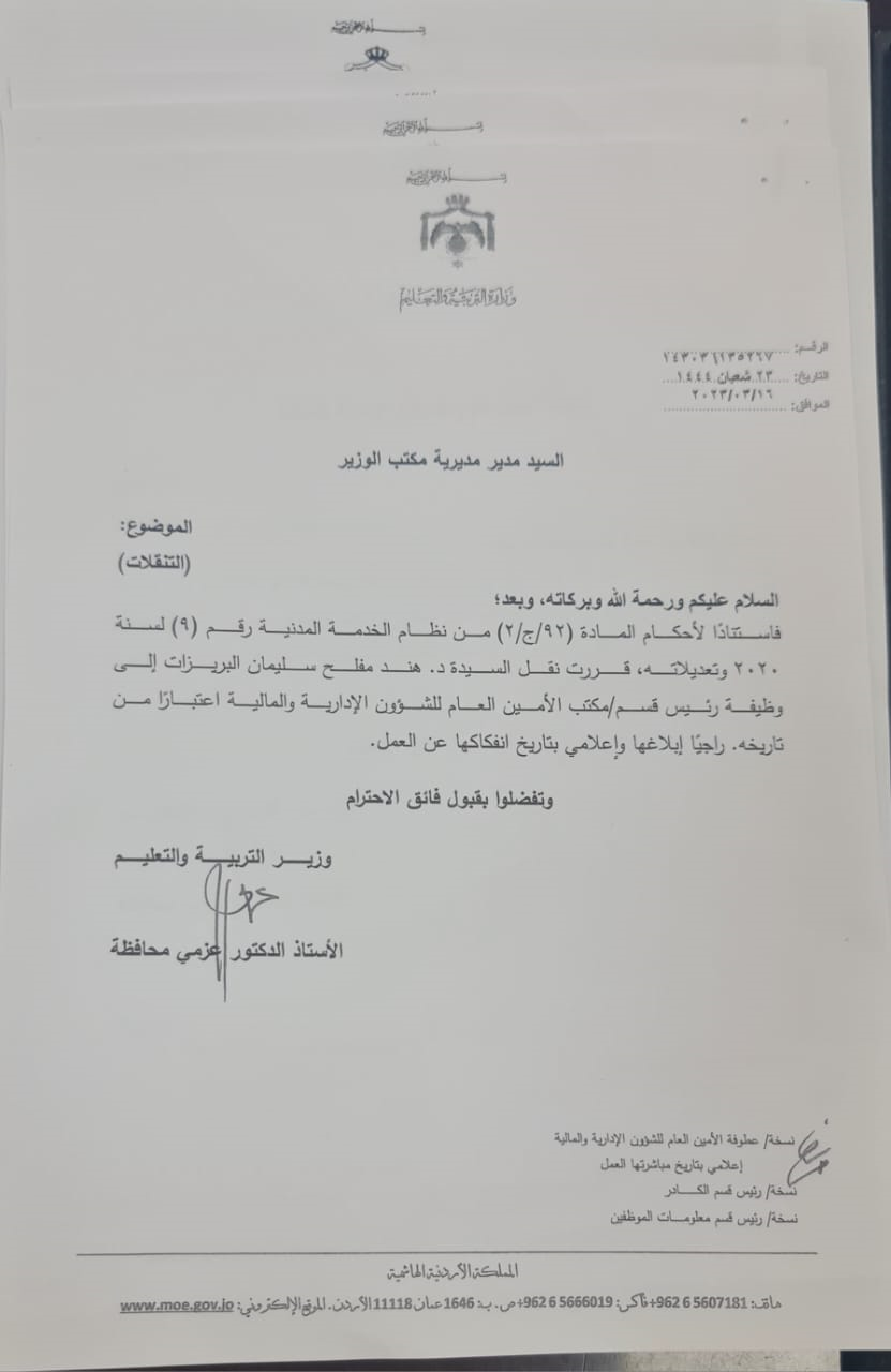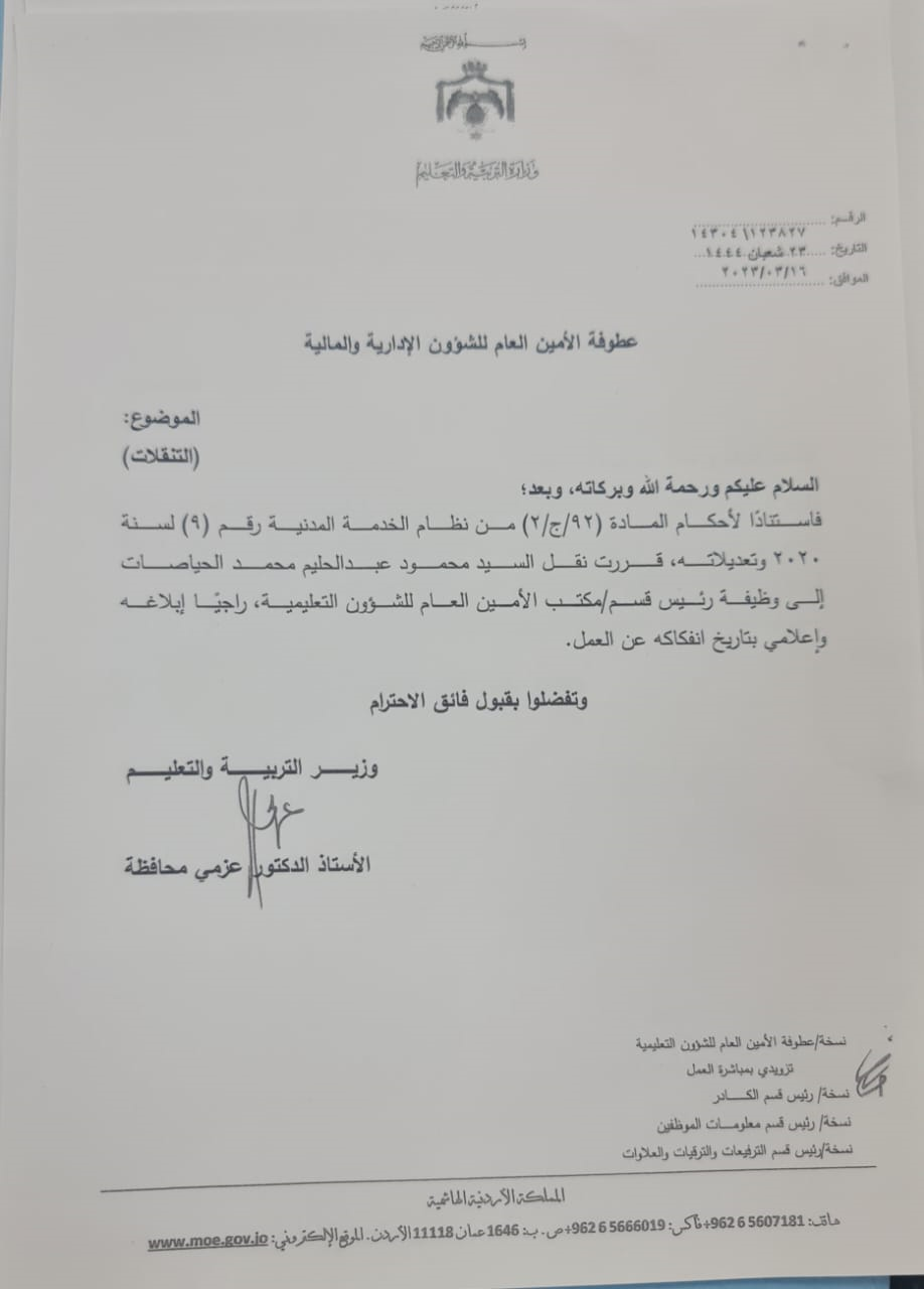 تشكيلات إدارية واسعة في وزارة التربية-أسماء