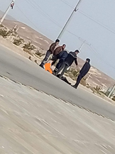 وأظهرت صورة متداولة، المواطن وهو يجلس على الأرض في الشارع شبه عار، فيما يقوم عدد من رجال الأمن بالتحدث معه.