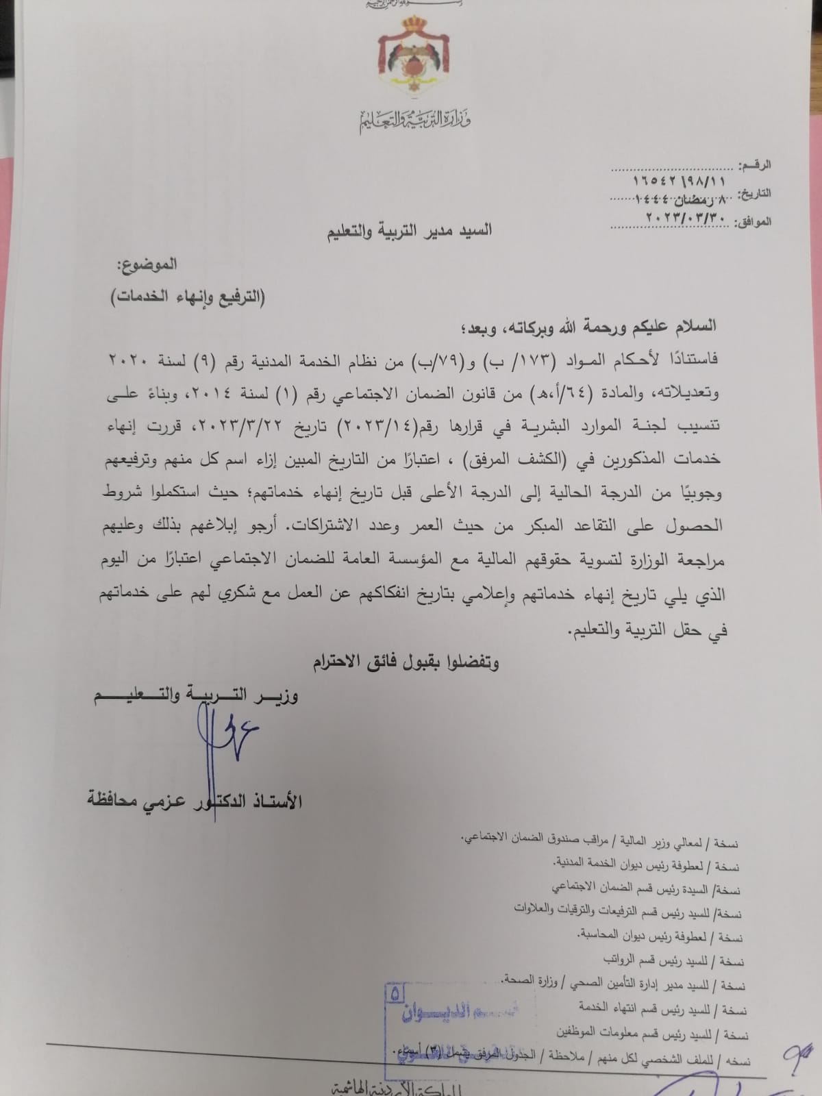 تشكيلات واحالات على التقاعد في وزارة التربية والتعليم