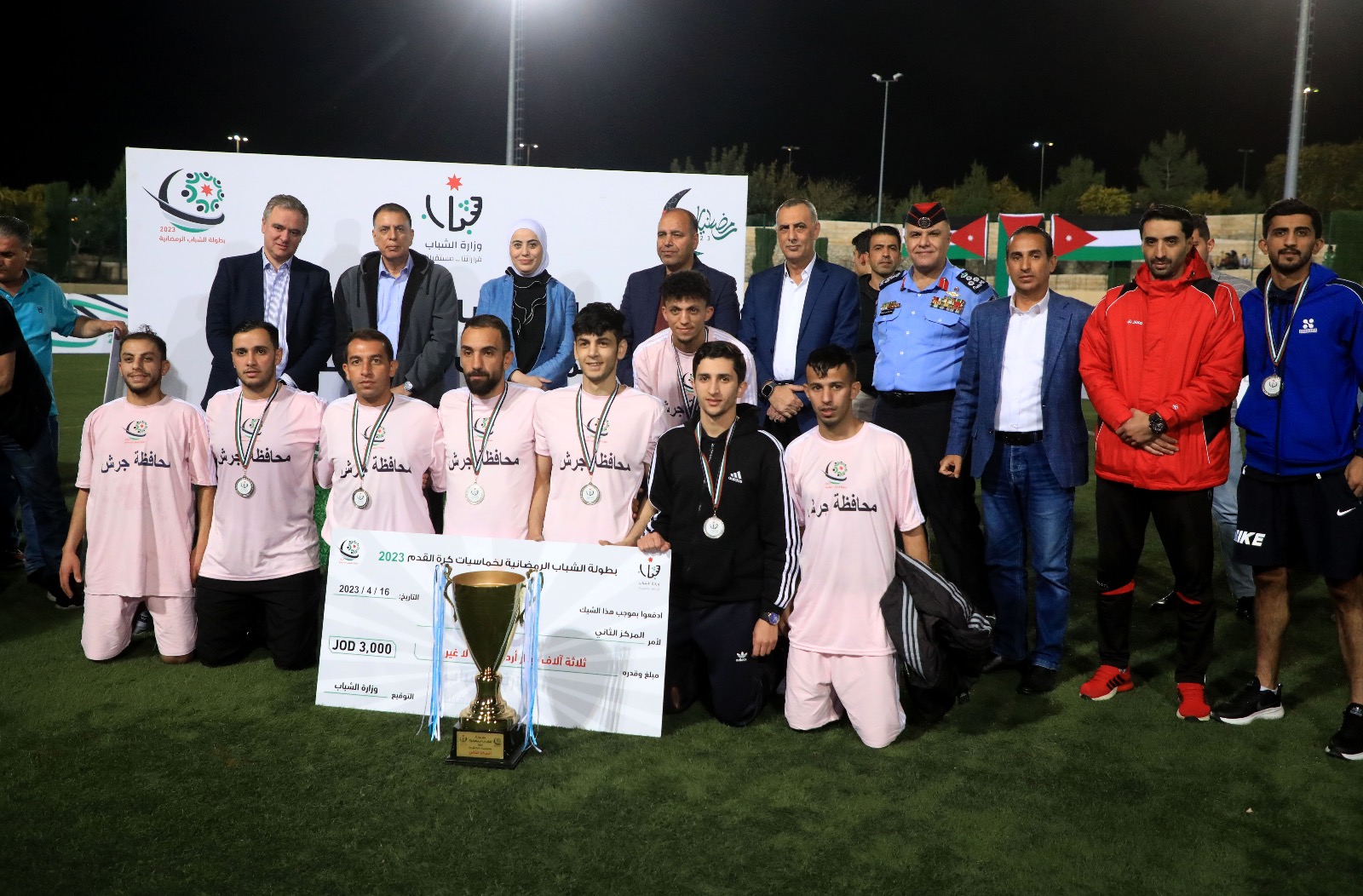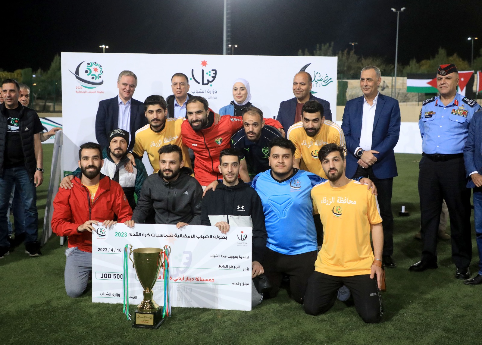 مندوبا عن رئيس الوزراء، رعى وزير الشباب محمد النابلسي، مساء اليوم الأحد، المباراة الختامية لبطولة الشباب الرمضانية لخماسيات كرة القدم 2023 في العاصمة عمان بحضور وزراء الداخلية مازن الفراية والتنمية الاجتماعية وفاء بني مصطفى و محافظ العاصمة ياسر العدوان ومحافظ جرش فراس الفاعور ومدير شرطة جنوب عمان سفيان الربابعة و أبناء المجتمع المحلي.