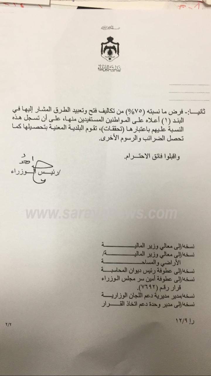 مجلس محافظة عجلون يرفض الزام مواطنين بدفع نسبة 75% بدل اثمان فتح وتعبيد طرق زراعية .. "وثيقة"