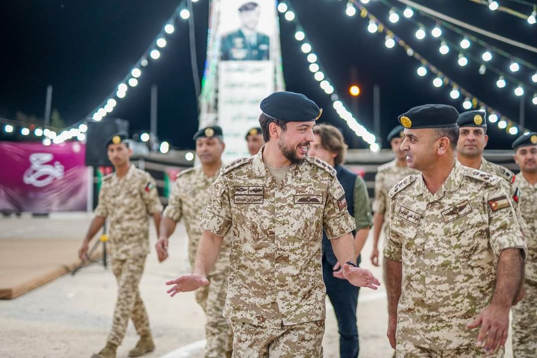 وشارك سمو ولي العهد، رفاقه من الضباط وضباط الصف والجنود، بحضور سمو الأمير هاشم بن عبدالله الثاني، احتفاءهم الذي اشتمل على فقرات شعرية وغنائية ووصلة سامر ودبكة شعبية، فضلا عن شد الحبل وتركيب الأسلحة وفكها.