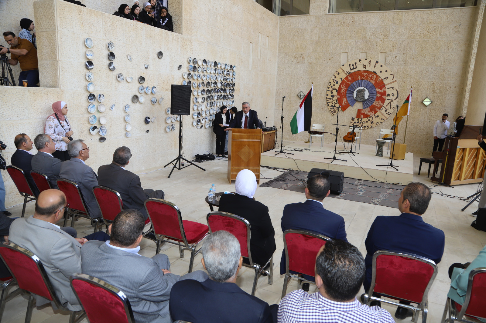وافتتح عبيدات المعرض الفني، الذي تناول لوحات فنية ولوحات "جرافيك آرت" ومشغولات يدوية من الخزف والنحت عمل عليها طلبة من قسم الفنون البصرية من كافة السنوات الدراسية جمعوا فيها طاقاتهم وإبداعاتهم، وعرض مسرحي أداه طلبة قسم الفنون المسرحية وحضر جزء منه رئيس الجامعة ونوابه، وتستمر فعاليات اليوم العلمي على مدار هذا اليوم .