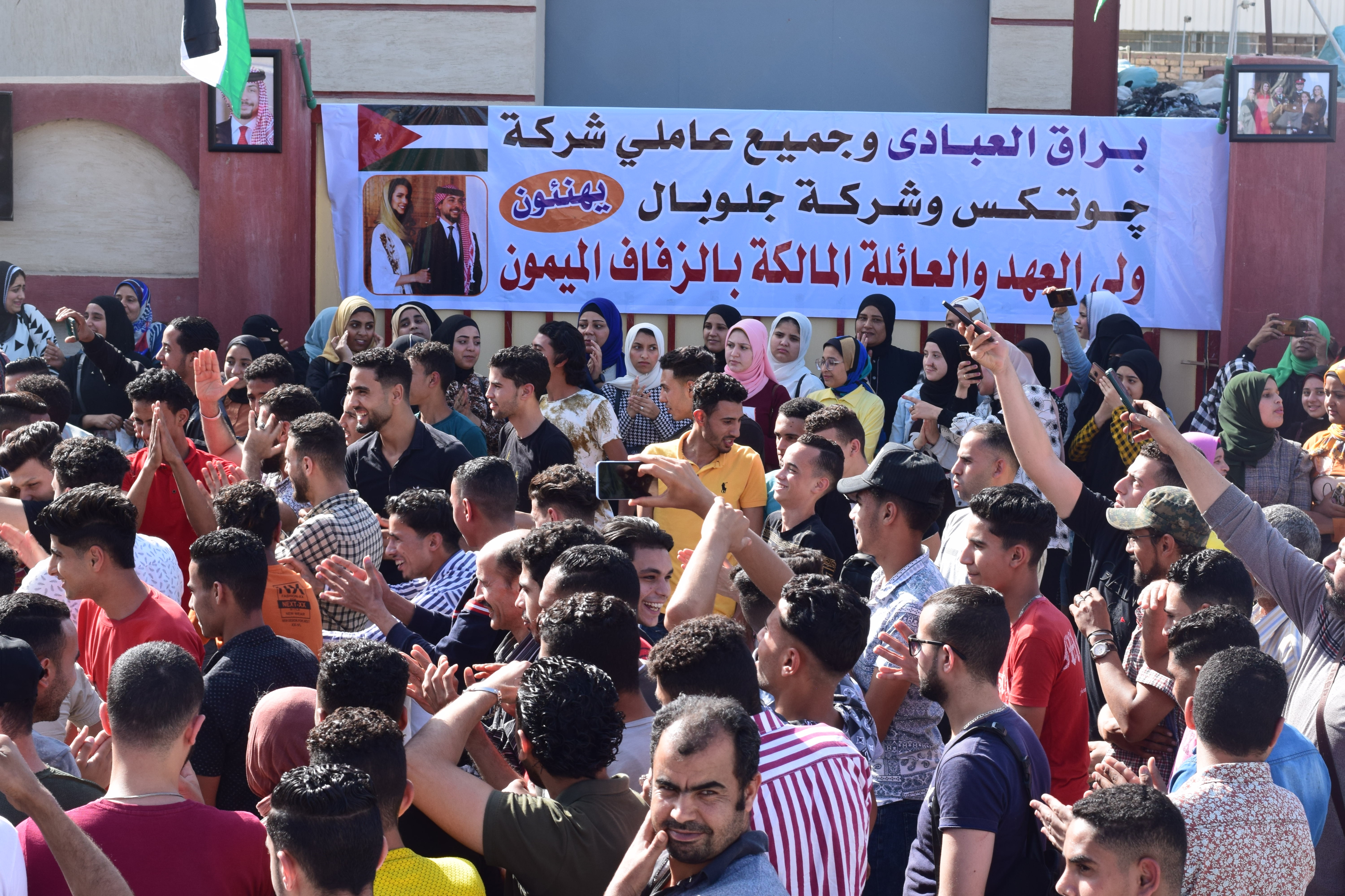 احتفلت شركة جوتكس وشركة جلوبال لصناعة الألبسة في مصر بزفاف سمو ولي العهد وسمو الأميرة رجوة الحسين، حيث جرى حفل شارك فيه أردنيون ومصريون عبّروا عن فرحتهم بهذه المناسب