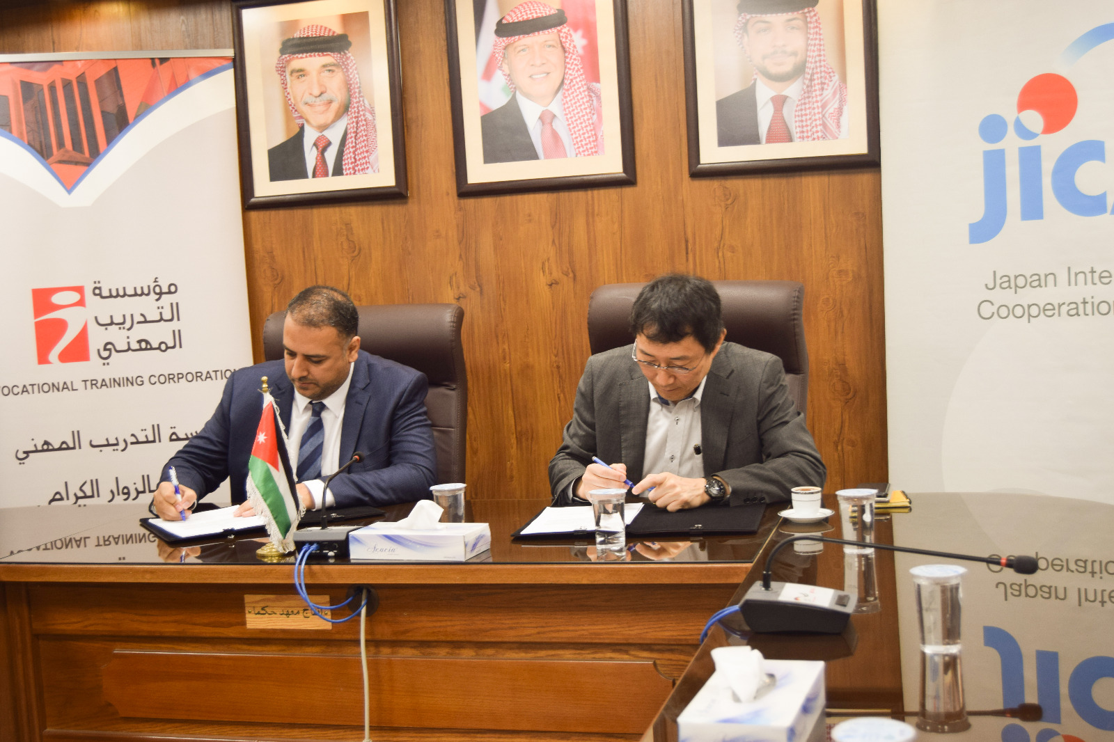 وقعت مؤسسة التدريب المهني اتفاقية تعاون مع الوكالة اليابانية للتعاون الدولي تستهدف الى تدريب في مجال السلامة والصحة المهنية وتنص الاتفاقية والتي وقعها عن مؤسسة التدريب المهني المهندس احمد مفلح الغرايبة وعن مكتب جايكا مدير مكتب جايكا في الاردن السيد واكوي وبحضور كيمورا ساتوكو من مكتب جايكا الاردن و مساعد المدير العام للشؤون الفنية المهندس ابراهيم الطراونة و مدير مديرية تطوير الاعمال رأفت الصوافين على تدريب على تدريب 100 مدرب ومدربة في مجال السلامة والصحة المهنية من وزارة العمل والشؤون الاجتماعية العراقية و المركز الوطني للسلامة والصحة المهنية بالاضافة الى مدربين من وزارة العمل والشؤون الاجتماعية لاقليم كردستان