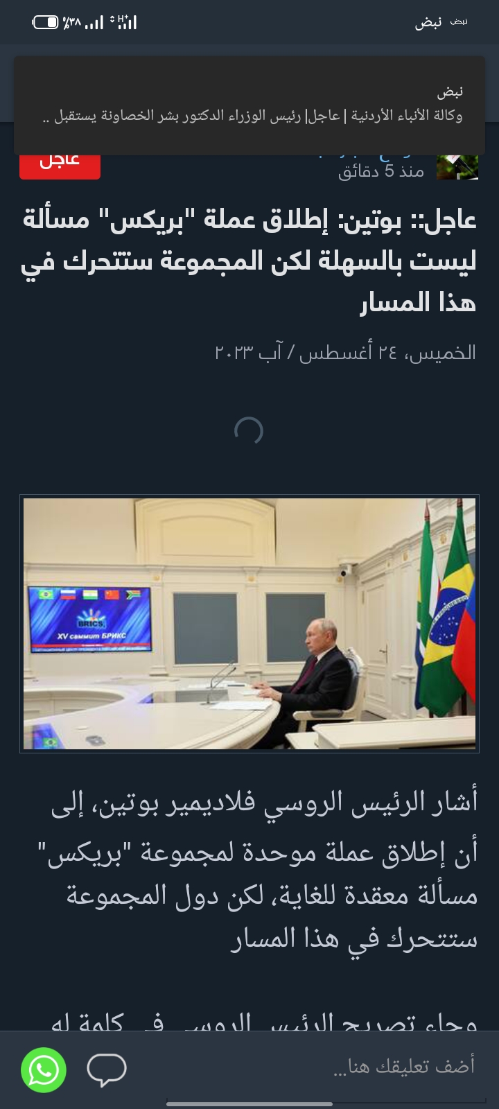 بجنوب إفريقيا بمشاركة ممثلي وقادة دول انضمت إلى المجموعةوهنأ بوتين الدول الجديدة التي انضمت إلى "بريكس" وقال: "أهنئ الأعضاء الجدد الذين
