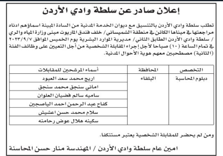عاجل /مدعوون لإجراء مقابلات شخصية (أسماء)